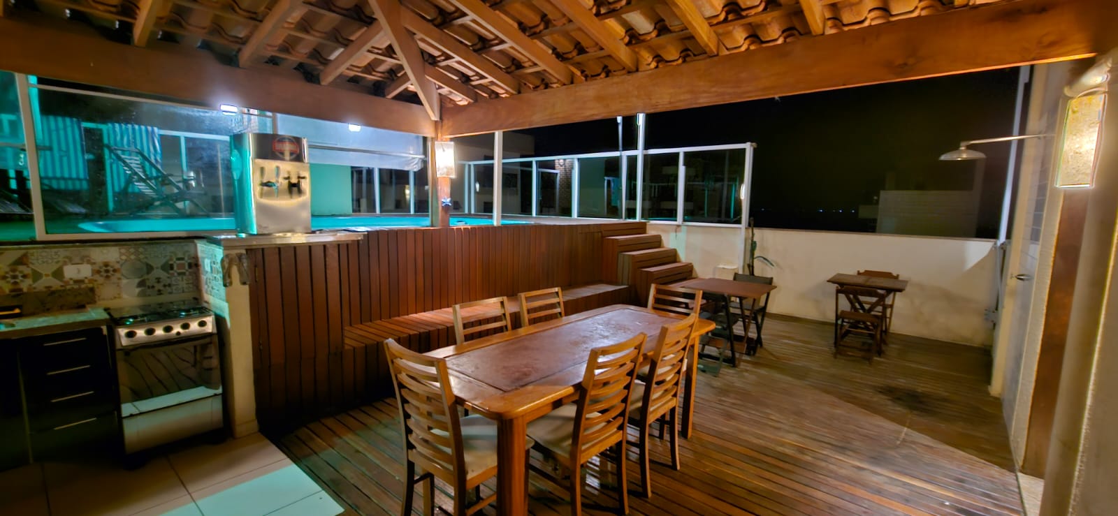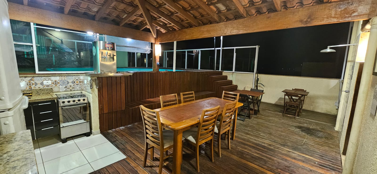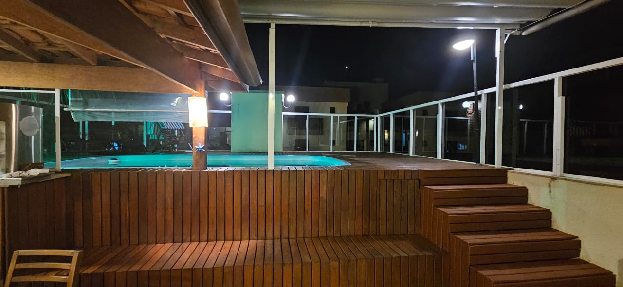 Cobertura com piscina para até 14 pessoas, cozinha compacta com geladeira, fogão e todos utensílios de cozinha, sala ,lavanderia e sacada com churrasqueira.